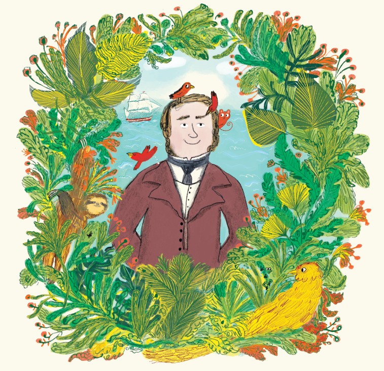 My favourite illustration changes all the time, so I guess I love them all. But for this interview I’ll pick … the first picture: Darwin with the plants, which starts it off so beautifully.